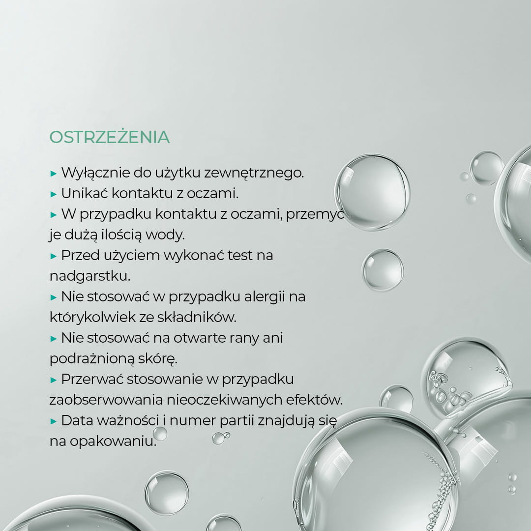 Zawarty postbiotyk (Lactobacillus Lysate) wspiera mikrobiom skóry i pomaga utrzymać odpowiedni poziom nawilżenia. Glutation działa antyoksydacyjnie, poprawia elastyczność skóry i pomaga zmniejszyć widoczność porów, nadając cerze gładszy wygląd.